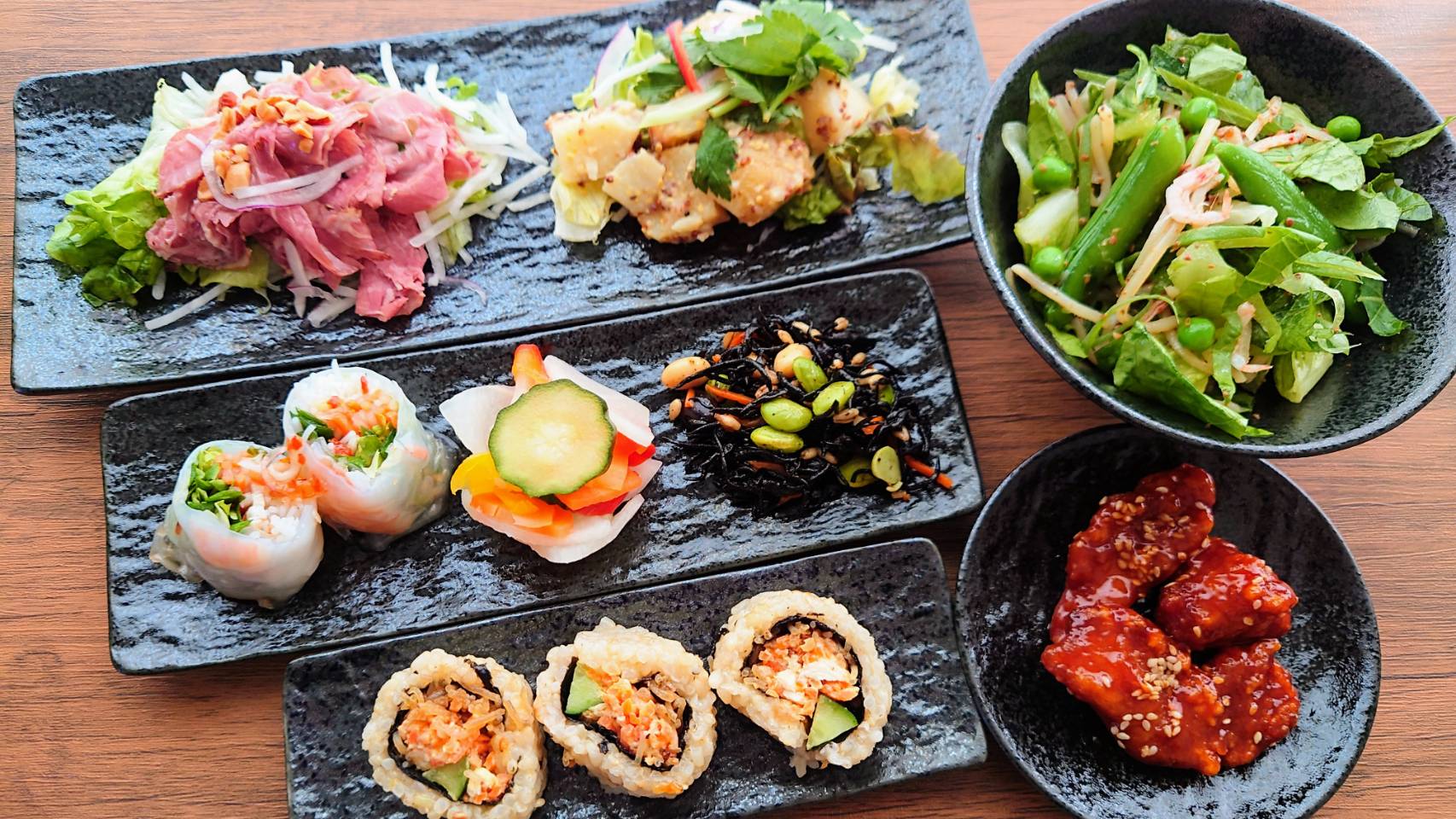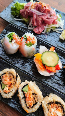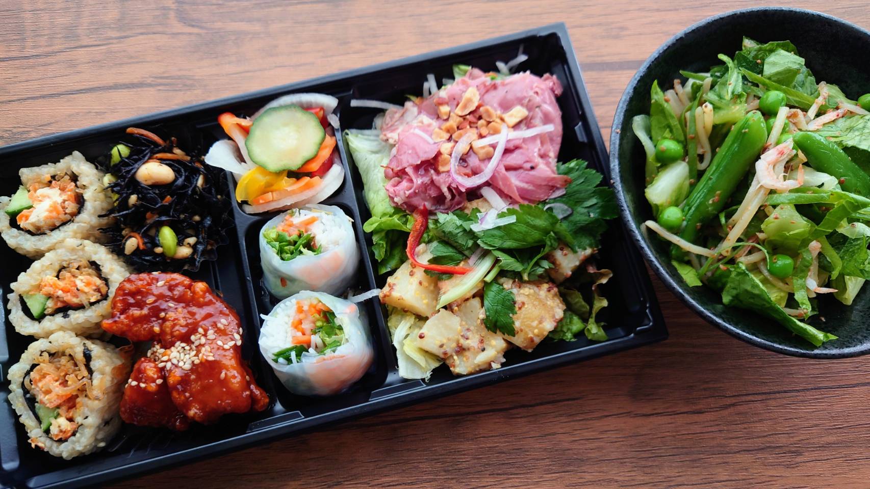1年近く増量状態が続いていて、特にここ半年は食べたい放題でなかなか酷かったので、体が軽くなってだいぶ楽になりました。 筋トレも毎日しているのでムキムキです。 むちむちがムキムキに。 すぐに筋肉がつくタイプなので無駄なお肉が落ちると顕著に表れます。 腕と背中は結構ムキムキ。 キュッとすれば腹筋も見えるようになってきました。 下半身も鍛えたいのですが、ダンベルが好きなのでどうしても上半身に付きがちです。 脚の筋肉ってどうやったらつくのかしら? まあ、これが続けば良いのですけどね。 コロナ禍でお取り寄せにハマッて、クッキー、焼菓子、ケーキ、しまいには塩っぱい系のポテチにまでいったのがやはり良くなかったですね。 粉もの甘い系、スナック菓子は当たり前ですが太ります。 今はお菓子は全く食べなくなりましたし欲することもなくなりました。 毎日ハーゲンダッツは食べていますけど大丈夫。 胃が小さくなったのでご飯も普通の量で大丈夫です。 本当にこれが続けば苦労しないのですが。 今日もお買い物と散歩でたっぷり歩いてきました。 春先に買ったペールグリーンのコートがとても気に入っていて、それを着てスニーカー履いて、こちらも最近買ったお気に入りのサコッシュを掛けてお出掛けするのが楽しくて仕方ありません。 ついでにペールグリーンとグレーの日傘もお気に入り。 ご近所オシャレも楽しいものです。 先日後輩と話をしていた際、70になっても私はオシャレをしたいと話していました。 髪が真っ白になってシワシワになっても、黒茶灰色しか着ないようなおばあちゃんにはなりたくありません。 何なら今と同じ格好をしたいくらい。 幾つになってもオシャレを楽しみたいです。 今日のお昼ご飯。 RF1の玄米ロール入り 30品目のSalad bento。 お皿に盛り付けるとやっぱり盛りだくさん。 お弁当はそのまま食べるよりお皿に盛り付けた方が満足度が違います。 パストラミビーフも玄米ロールもやっぱり美味しいです。 お肉苦手ですが、ニョクマムチキンも食べられました。 パストラミビーフがとにかく美味しいです。 玄米ロールも大変好み。 これだけで販売してくれたら良いのにといつも思います。 お弁当シリーズはいろいろちょっとずつ食べたい私にはピッタリです。 +サラダ1品で大満足。