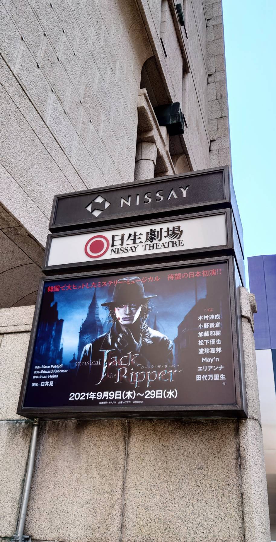 はんじん君のお着物姿が可愛い♪ そして早く旡伝が見たい。 を昨日観て来ました。 二度目の日生劇場。 一般販売開始後に取ったチケットですが、グランドサークルセンター2列目が取れて良かったです。 前回の真後ろ席という偶然。 早めに入ったのでサイドの席も行ってみましたが、思ったより見切れないので見やすそうです。 しっかり斜め配置ですし、座席も後ろに重心が行くような角度で座りやすく、日生劇場は古いですが全体的に観やすい良い劇場だと思います。 グランドサークル2列目も前の人の頭が全く被らずとても観やすかったです。 扉前だったので退場も一番最初で楽チン。 日生劇場はきちんと細かく番号でブロックごとに分けての退場でした。 係員がすぐ近くに来て案内してくれたので分かりやすかったです。 お喋りも帝劇に比べたら圧倒的に少なかったですね。 まあ一部壊れたレコードのようにずっと喋っていた小娘はいましたけど。 キャストのお喋りやめてアナウンスが何度も流れても平気で喋り続けるあたりやはり喋るのをやめると死ぬのかしら。 入場の段取りも良く、対策もきちんとされていて、グッズ売場も買いやすく、安心して観劇出来ました。 そんなこんなでジャック・ザ・リッパー。 キャストはこちら。 ジャック:加藤和樹 アンダーソン:松下優也 ダニエル:木村達成 言わずと知れた切り裂きジャックのお話です。 暗いグロい。 ゴシックホラーといった感じでしょうか。 とにかくこれでもかと人が次々死にます。 20年くらい前だったかジョニー・デップの映画も見ましたけど、舞台にしてもやっぱりグロいです。 というかよくぞ舞台でここまで。 死体に跨がって腸を引き摺り出すシーンは結構ビックリしました。 他にも血みどろな演出だらけ。 うっそりとしたロンドンの下町のセットが素晴らしく、世界観に浸れます。 そして心地良い歌声。 アンダーソン役の松下さんは黒執事のセバスチャンですよね。 甘い色気のある伸びやかな歌声が何とも気持ちが良い。 一番好きな歌声でした。 気怠げで暗い影のあるアンダーソンにぴったり。 この子のミュージカルはまた観てみたい。 ダニエル役の木村君も真っ直ぐで実に気持ちの良い歌声ですね。 エリザベートのルドルフも観てみたかった。 この子はとにかく顔が良い。 今時の顔ではなく、日本男児という感じの涼しげで凛々しいシュッとした顔。 小顔でスタイルが良く、文句無しに良い男という感じです。 和樹は声量が抜群でした。 よくよく考えたらフランケンシュタイン、マタ・ハリ、ジャック・ザ・リッパーと、ちょっとアレな役ばかり観ていることに気付きました。 今回もジャックだったので実に気持ちの悪い不気味な役どころでした。 和樹、こんな役が多いのか? いえいえ、似合っていましたけどね。 女を虫けら以下に思っているのか、グロリアの脚をずるずる引き摺り回すシーンが好きです。 とにかく気持ち悪かった(褒め言葉) カテコで怖っ!気持ち悪っ!とばかりにポリーに振り向かれていたのが笑えました。 和樹の気持ち悪さはマタ・ハリのラドゥーを思い出します。 女性キャストではMay'nが出ていたのですが、誰だっけ?何歌っていたっけ?と思いながら観ていて、あ、マクロスのシェリル・ノームかと唐突に思い出しました。 女性陣も低い歌声なので聴いていて心地良かったです。 全体の感想としては、うーん、曲が全く残らないミュージカルは印象としてはどうしても薄くなってしまうなあという感じです。 フランケンシュタイン、マタ・ハリもそう。 エリザベート、ダンス・オブ・ヴァンパイア、王家の紋章のように記憶に残る曲が無い。 まあ曲は完全に個人の好みですよね。 個人的に残らないだけです。 未だ謎の未解決事件であるわけですが、ジャックの解釈は面白かったです。 なるほど、そういうことかと納得。 個人的に恋愛要素は無くて良いと思ってしまう方ですが、アンダーソンとポリーの関係は何とも切なくて好きでした。 いろいろなものを腹の中に抱えていそうなアンダーソンが良い。 常習なのはアヘンの方が良かったなと思いますが、さすがに舞台では難しいので手軽な吸入しやすいコカインにしたのでしょう(映画フロム・ヘルではアヘン窟) アンダーソン、最期はコカインで命を落としそう。 観終わってスッキリとはいかない暗さとグロさなので、夜に観るのはちょっと……というミュージカルでした。 劇場を出て太陽の光を浴びて漸くほっとする感じです。 話は知っていますし、雰囲気は好きなので楽しめましたが、個人的には何回も観たいとはあまりならないですかね。 キャス変はちょっと気になりますけど。 退屈で寝てしまうようなお話でも無いですが、アンサンブルシーンが多くてちょっと冗長に感じてしまうのは否めませんでした(何気に一番出番が多いのはアンサンブルの皆さん) でもやっぱりグランドミュージカルは楽しいです。 生オケにコーラスが入るとゾクゾクします。 キ