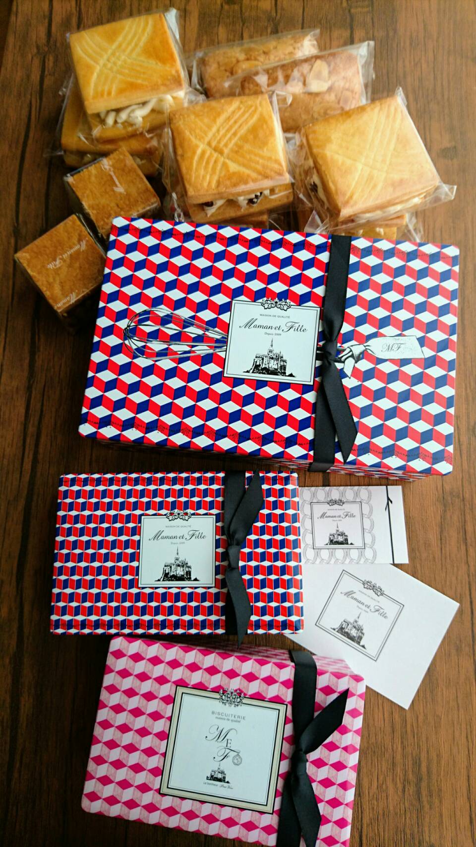 × [PR]上記の広告は3ヶ月以上新規記事投稿のないブログに表示されています。新しい記事を書く事で広告が消えます。 カフェタナカのビスキュイもまだ書いていませんが、とりあえず今日のうちにマモンエフィーユを書いておきたいのでフレンチビスキュイ缶です。 黒いリボンがかけられたトリコロールカラーのエッシャーのような幾何学模様の缶の中に薄いビスキュイがみっちり45枚。 テープを剥がしただけでバターの良い香りが漂います。 そしてとにかく取り出すのも大変なくらいみっちり。 1枚目を取り出す際は妙な緊張感があります。 薄い綺麗な焼き色とバターの香りが堪らない♪ 口に入れるとサクサクパキッとした食感。 卵感の強くないちょうど良い甘さ。 食べた瞬間、これ好き!と声に出したくなる美味しさでした。 なるほど、これは確かに美味しいですね。 原材料は小麦粉、発酵バター、砂糖、卵といたってシンプル。 そのシンプルさが私の好みにドンピシャでした。 わりと普通、素朴なんて感想も見かけたのでちょっと不安もありましたが、杞憂に終わりました。 大きな缶も買っておいて良かったです。 サクサク軽いのでこれはいくらでも食べられそう。 ええ、これは美味しいです。 パッケージやお店の雰囲気も大変好みですが、お味の方も大変好みでした。 美味しいお店に出会えて良かったです。 1時間半待ちの価値は十分ありました。 比べることでもありませんが、カフェタナカより私はマモンエフィーユの方が好みです。 マモンエフィーユ、催事で出店されたらまた是非とも買いに行きたいくらい気に入りました。 ビスキュイ珈琲缶のデザインがとても素敵なのでこちらもいつかは手に入れたいです。 因みにこちらのビスキュイ缶とノワ・ドゥ・ブールとビスキュイテリエ・ブルトンヌのアソルティ缶は同じ型ですね。 製罐業者が同じかしら、型共通で型代かからないで版代のみかしらとついつい職業的な思考にいってしまいました。 それにしても美味しいビスキュイ。 お皿に移しておかないと1缶あっという間です。 PR レーズンサンド4つ。 マロンカシスサンド2つ。 フィナンシェカレナチュール2つ。 エンガディナー2つ。 1日10缶限定のビスキュイスペシャル缶1つ。 1日50缶限定のフレンチビスキュイ缶1つ。 1日8缶限定のサブレ・オ・ショコラ缶1つ。 16,729円のお買い上げです。 相変わらず金銭感覚のおかしい人のお買い物。 我ながら初めてのお店なのによくここまで買ったものだと思います。 最近作ったエムアイカードのポイントがよく貯まります。 今回、目玉とも言えるのがサブレ・オ・ショコラ缶でしょうか。 こちらは皆さん購入していました。 通常はかなり大きめサイズのものですが、こちらは小さいサイズなのだそう。 可愛らしいピンクの缶が素敵です。 そして幻のクッキーとも言われるフレンチビスキュイ。 大きな缶にフレンチビスキュイと珈琲ビスキュイが詰められたスペシャル缶。 1缶5,000円の大きな缶はさすがに食べられないかしらと思いましたが、実際の大きさを見たら1ヶ月あればいけそう、何より限定10缶はせっかく早く並んで買えるのなら買わなければ損という思いにあっさり負けて注文していました。 そもそも初めて買うものでも美味しかった時用に2つは必ず欲しいのですが、フレンチビスキュイ缶は1人1缶だったのでそれならば。 ホームページを見て是非とも食べてみたいと思っていたレーズンサンドも賞味期限10日と結構長めな日保ちに負けて4つも購入。 気付けば買うつもりのなかったエンナディナーまで注文していました。 マモンエフィーユ、初めてですがまず驚いたのがひとつひとつのその大きさ。 オシャレなパッケージとは全く相反したアメリカンなその大きさには本当にビックリしました。 フィナンシェひとつ取っても見たことのない大きさでちょっと目を疑うほど 。 写真ではちょっと分かりにくいですが、どれもかなり大きめです。 お値段もなかなかですがその大きさに納得です。 寧ろお安いくらいではないでしょうか。 マロングラッセケークもかなり大きくて美味しそうだったので悩みましたがこちらはさすがに断念。 それでもよく買いました。 神戸のお店で通販でも入手困難というお菓子たちが目の前にずらりと並んでいる誘惑には勝てませんでした。 しかし誘惑に負けて正解。 新宿伊勢丹のマモンエフィーユの催事に行って来ました。 たまたま何となく休もうと休暇を取っていた日にやっていたので、これは行かねばと初めての人気スイーツ店の催事参戦です。 相当人気のお店なので悩みましたが1時間半前の8時25分に到着。 既に2名並んでいたので後ろに着こうと近付くと、すぐに伊勢丹のスタッフの方が「限定スイーツですか?」と声をかけてくれました。 初めてなので1時間半前がどれくらいなのか読めなかったのですが、初日に行かれた方のブログを見てこの時間にして3番目。 まあまあ良い方でしょうか。 15分ほどして私の後ろに2名